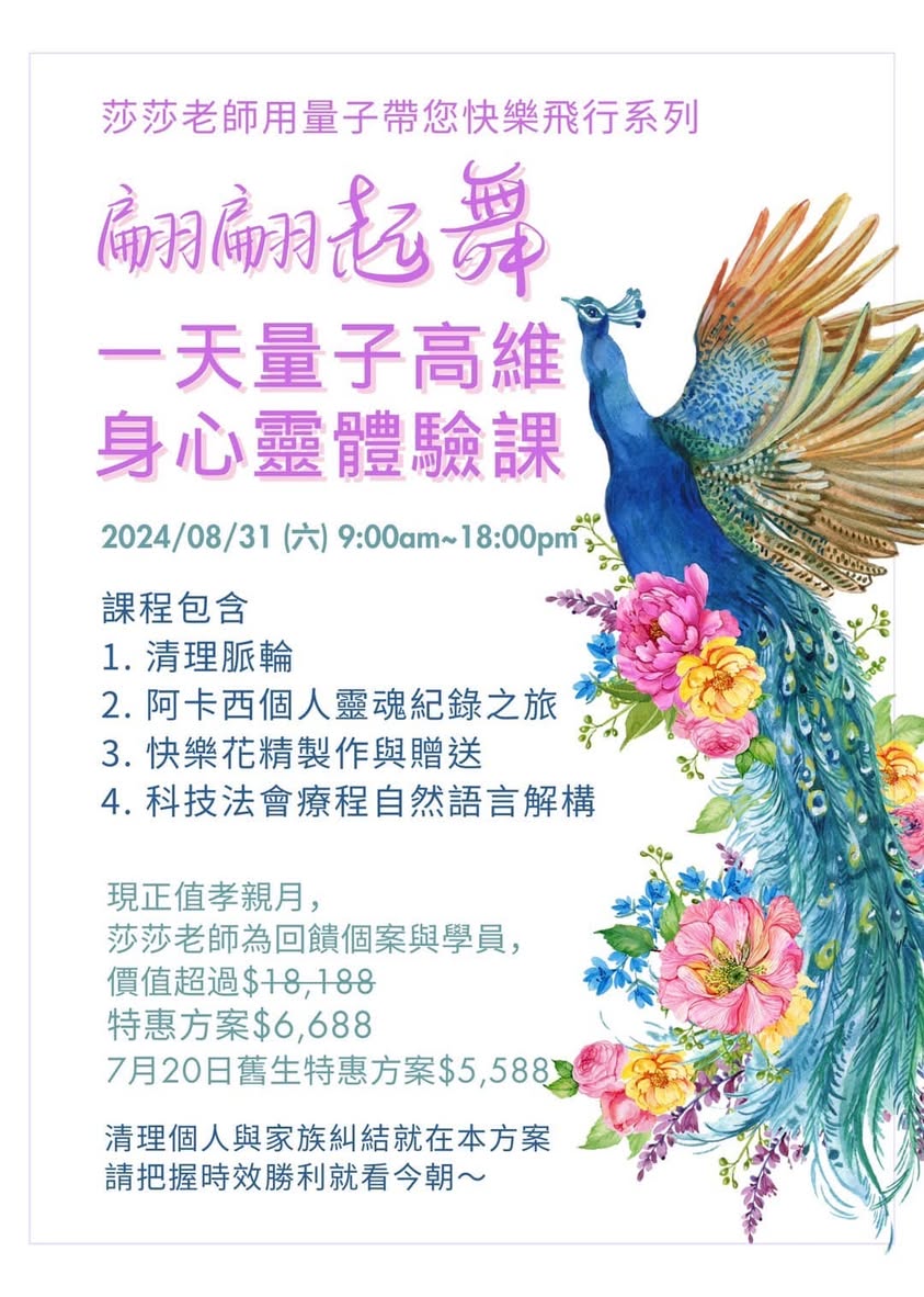 20240831~(六) 10:00am-18:00pm翩翩起舞 一天量子高維身心靈體驗課程